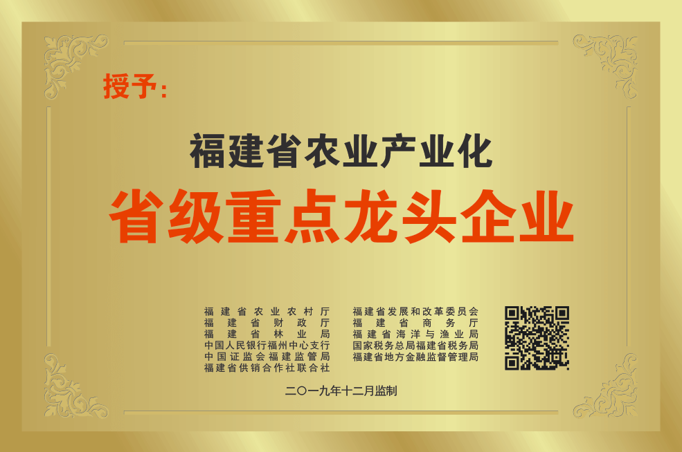 喜訊:熱烈祝賀童城食品榮獲福建省級重點龍頭企業(yè)稱號!